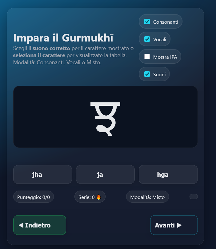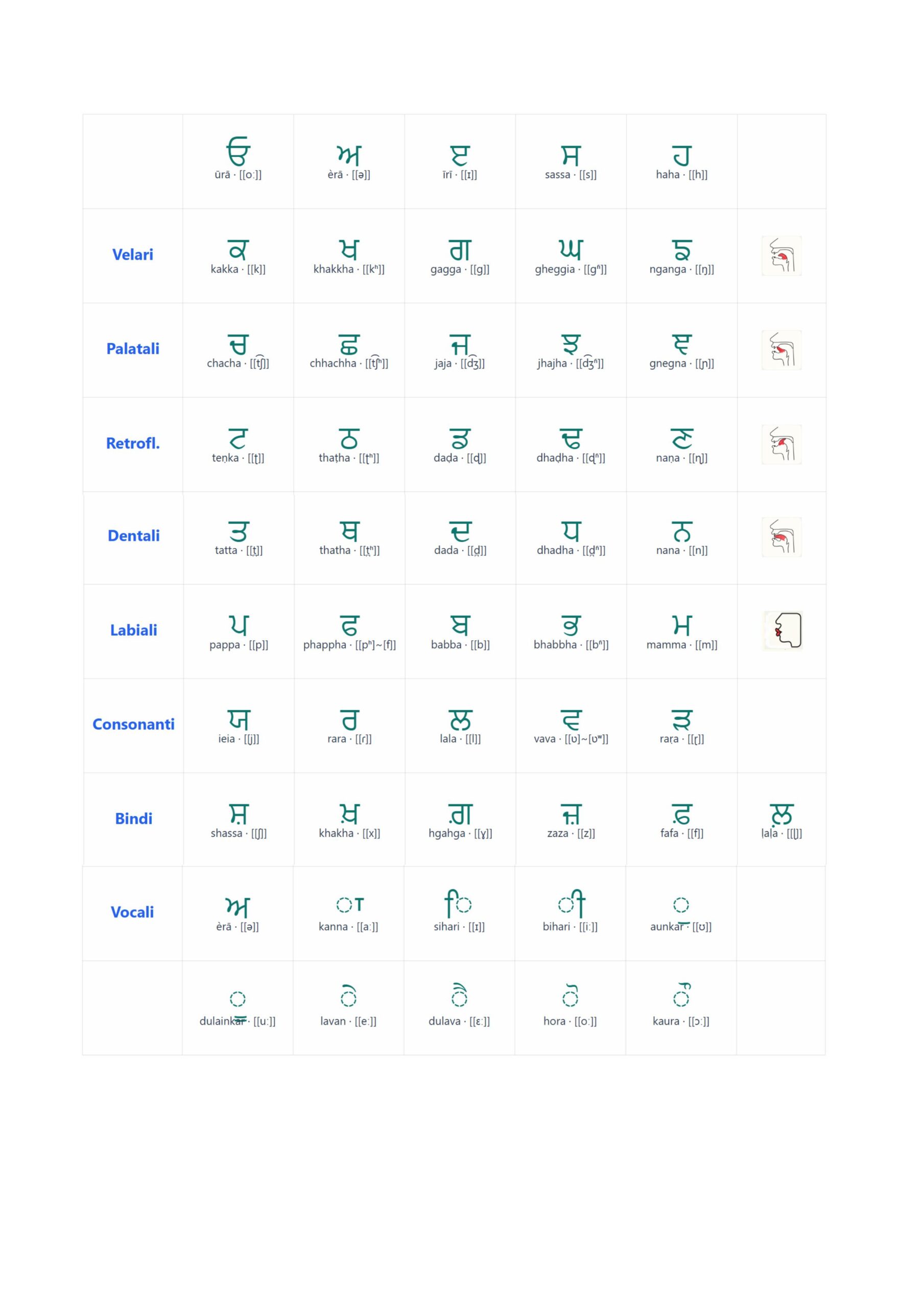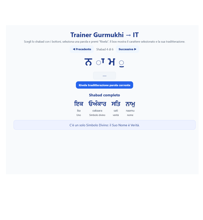 Impara le lettere che compongono il Sacro Bani del Guru.